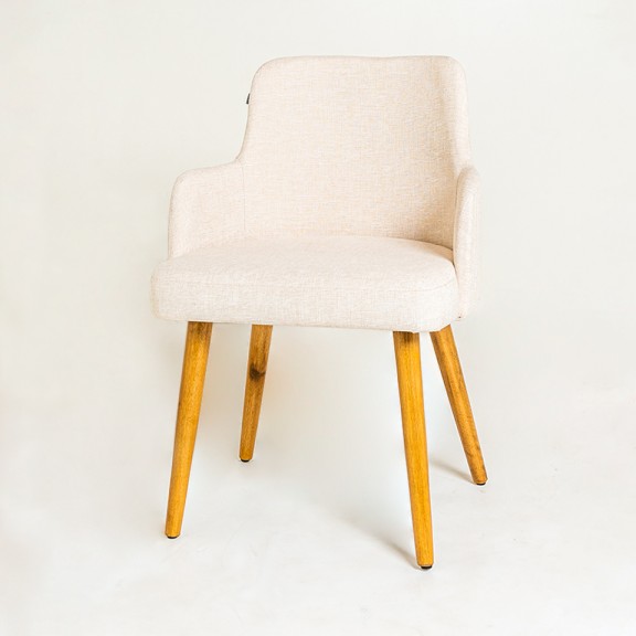 SILLA CLARA 103 TELA DE HILO BEIGE CLARO CON COSTURA PATA NOGAL