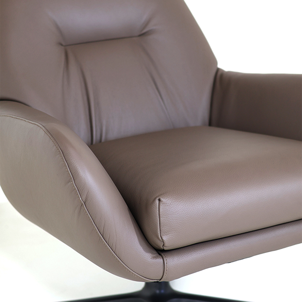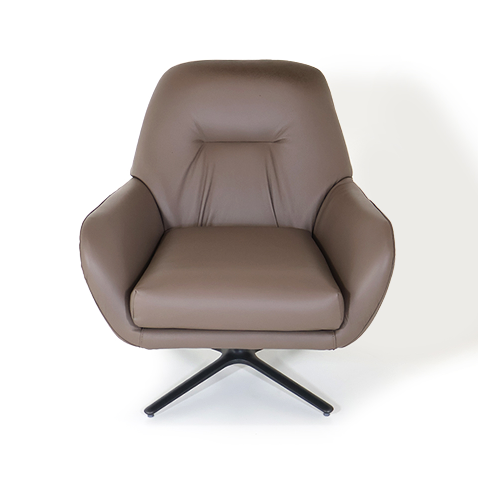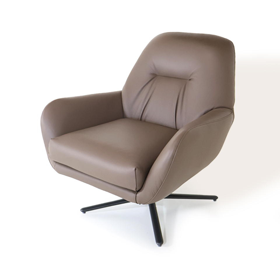 POLTRONA LEYVA 63 CUERO AVELA BASE GIRATORIA METALIZADO CHUMBO FOSCO