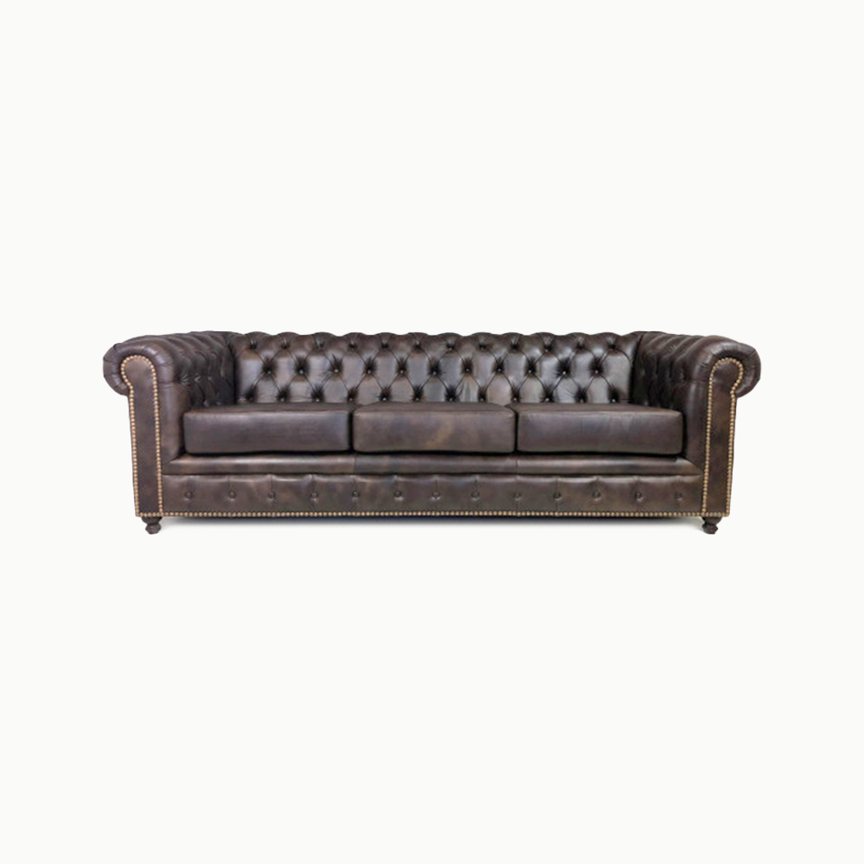 SOFA CHESTER 01 CON TACHAS 3 CUERPOS (2.70) CUERO MARRON CAPITONEADO