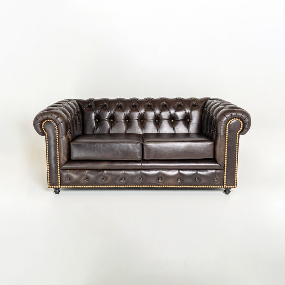 SOFA CHESTER 01 CON TACHAS 2 (1.90) CUERPOS CUERO MARRON CAPITONEADO