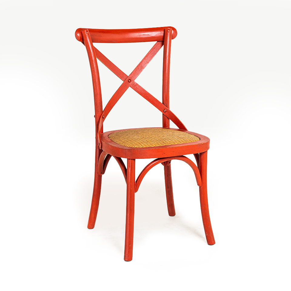 SILLA X F3 ASIENTO RATAN LUSTRE ROJO