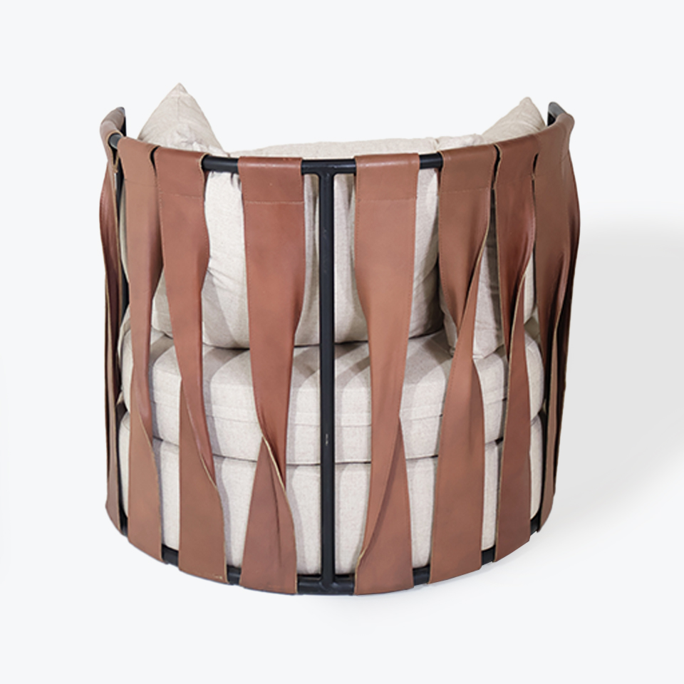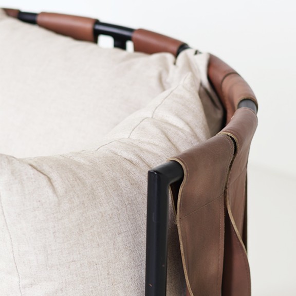 POLTRONA SOL 103 1 CUERPO CON TIRAS DE CUERO Y TELA DE HILO BEIGE CLARO /ESTRUCTURA DE HIERRO PINTADO NEGRO