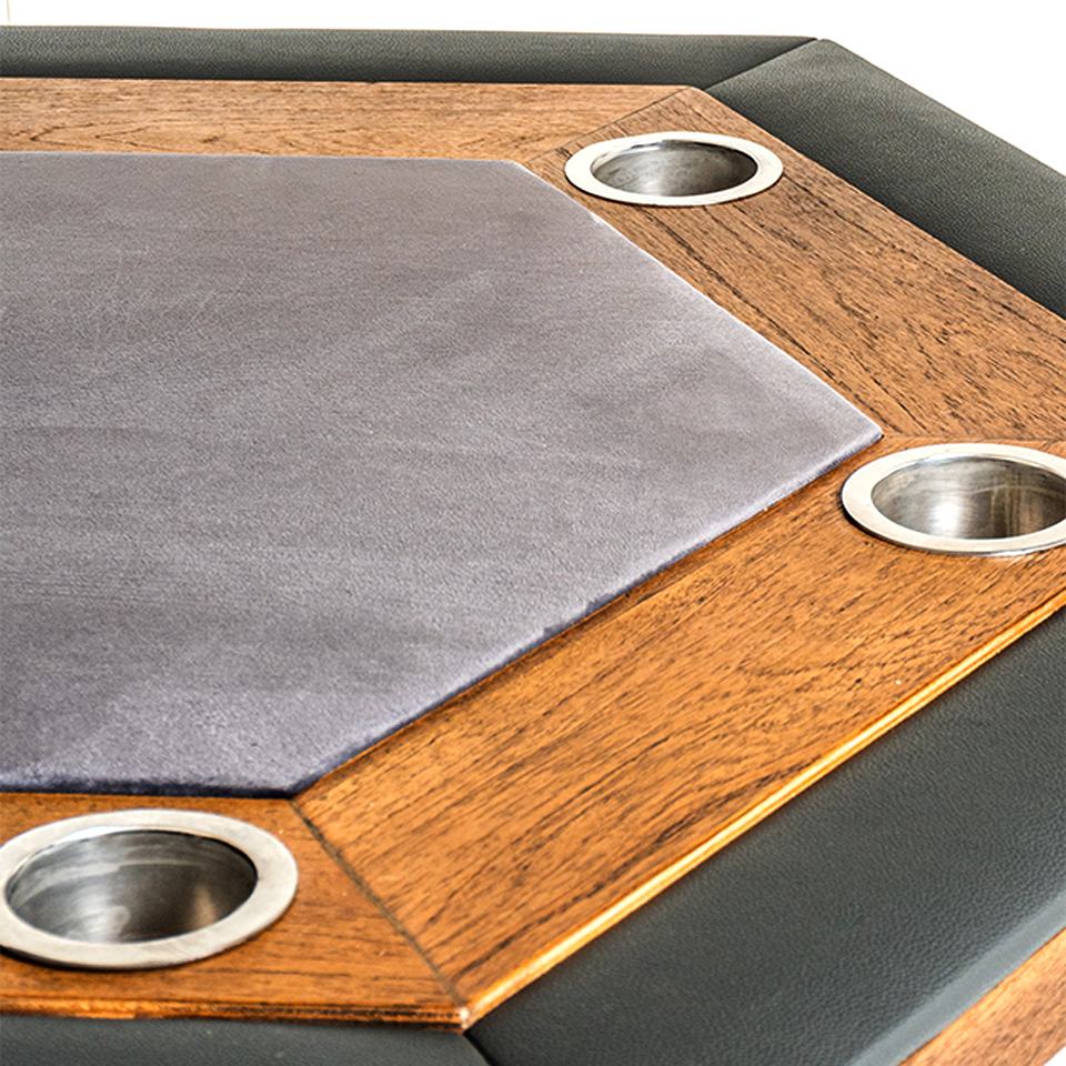 MESA TIMBA MA 08. HEXAG. CON PORTAVASO. TAPIZADO TELA GAMUZADA GRIS / SIMIL