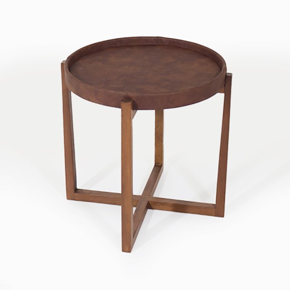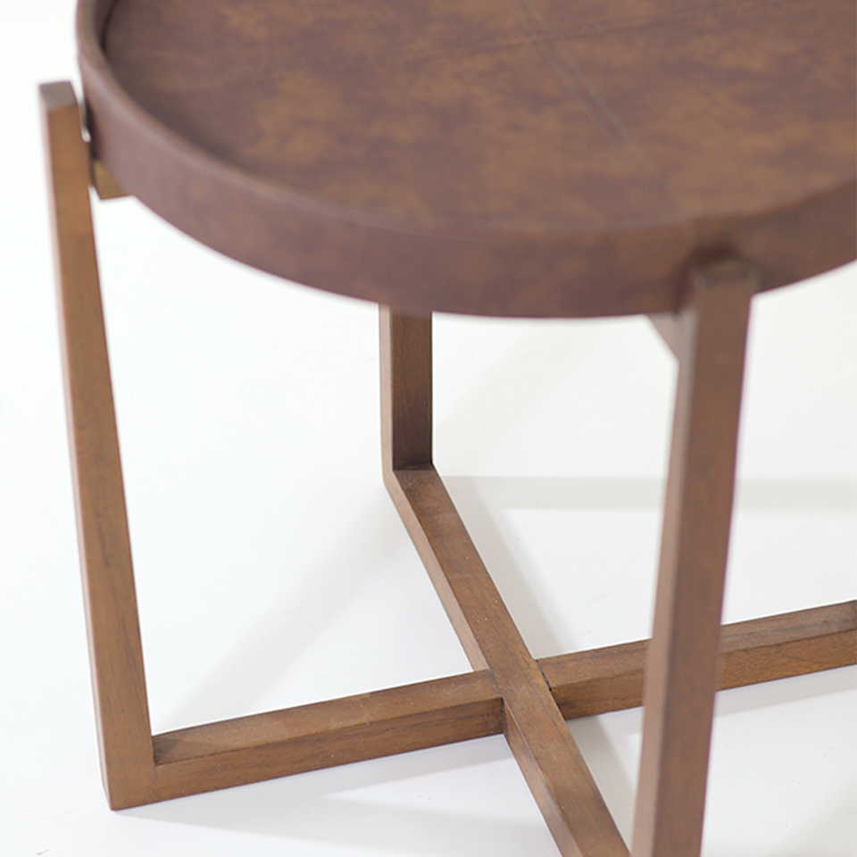 MESA LATERAL LIA 01 CON CUERO MARRON ZUELA LUSTRE FILIPINO