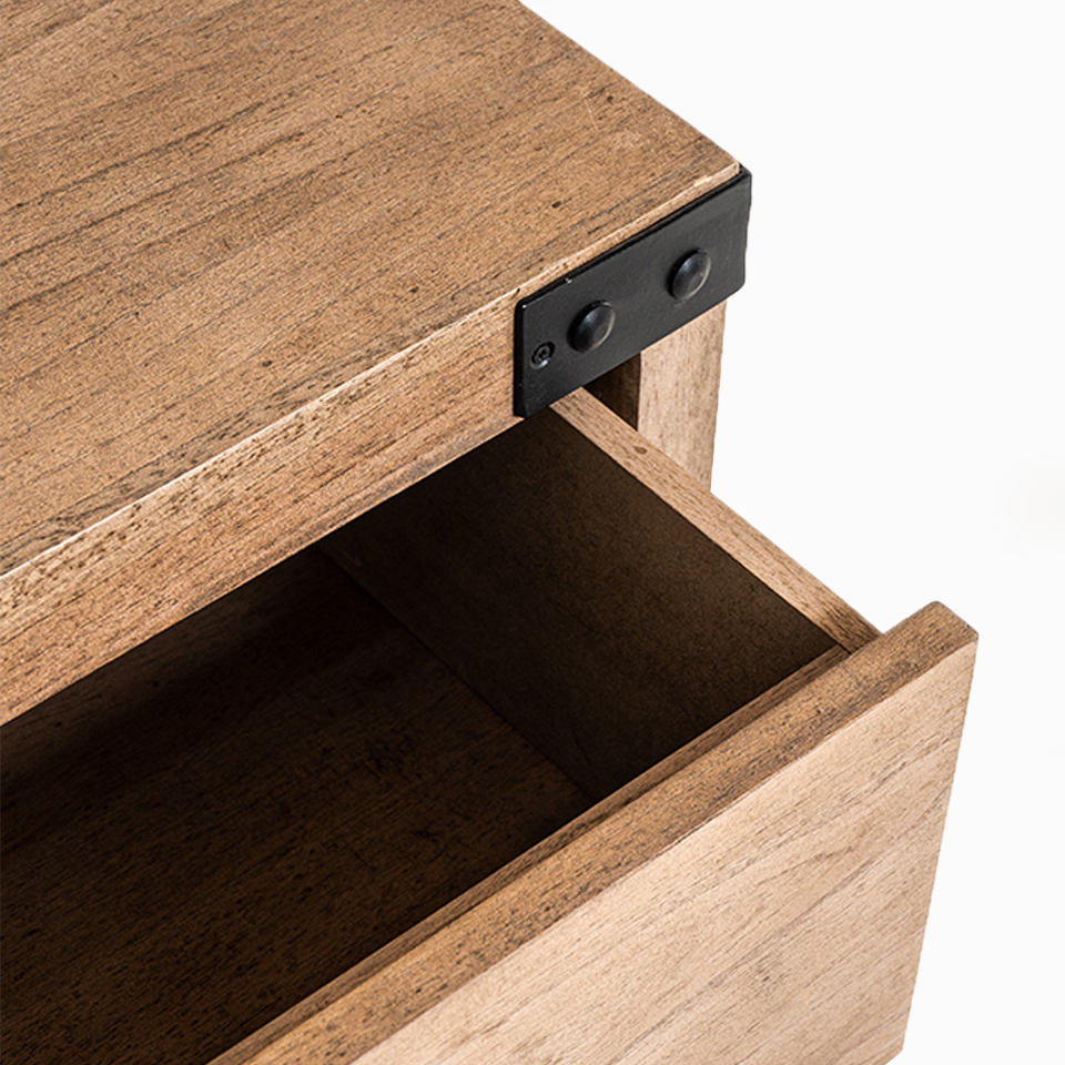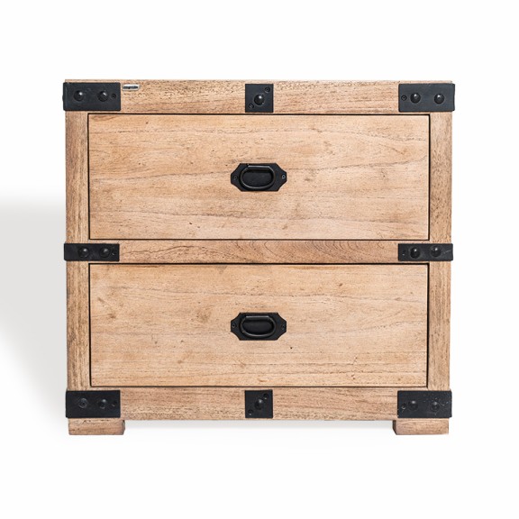 MESA DE LUZ SILVER CHEST. 2 CAJONES CON HIERRO NEGRO. LUSTRE RESTO 2