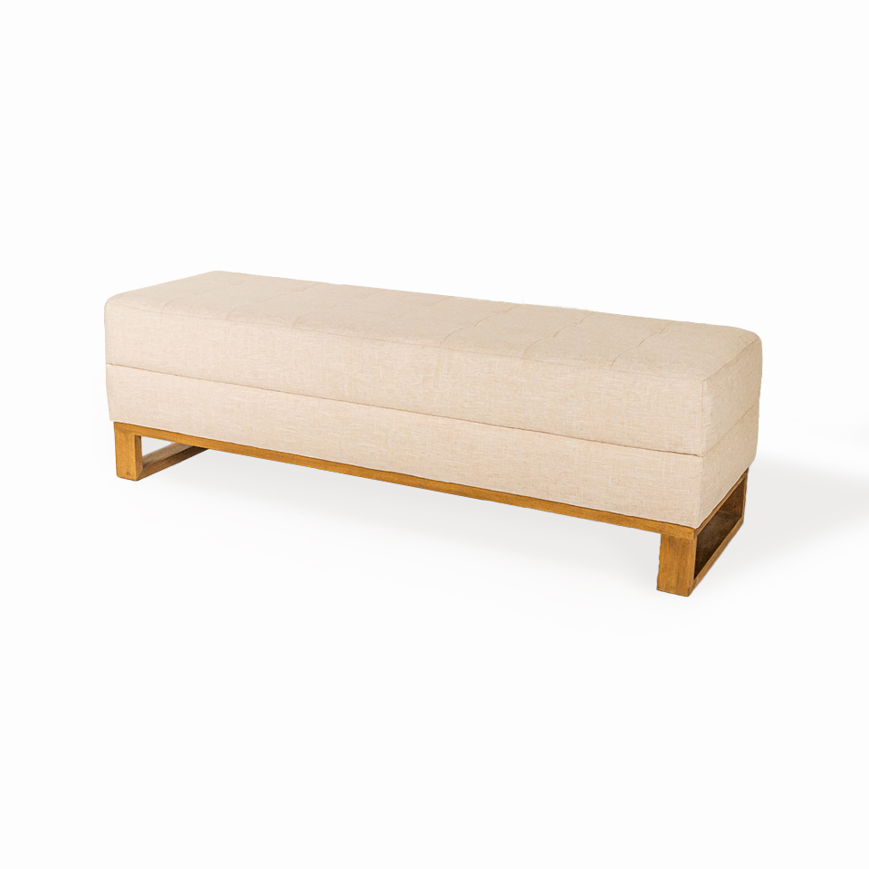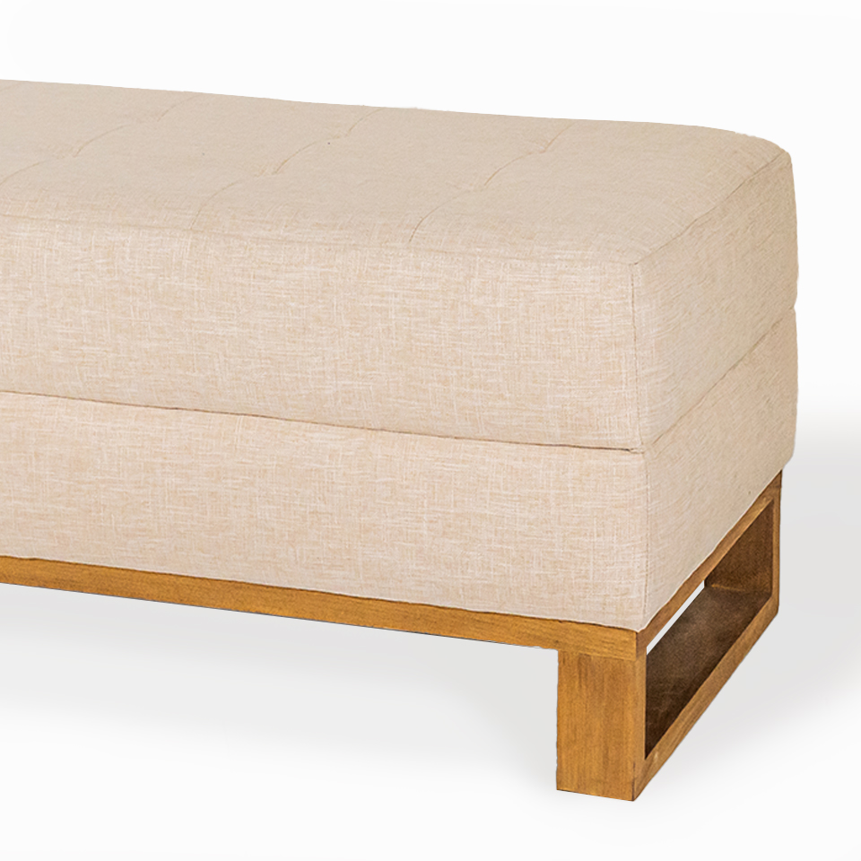 BANQUETA MELIA. TELA DE HILO BEIGE CLARO. PATA MADERA LUSTRE RESTO 1