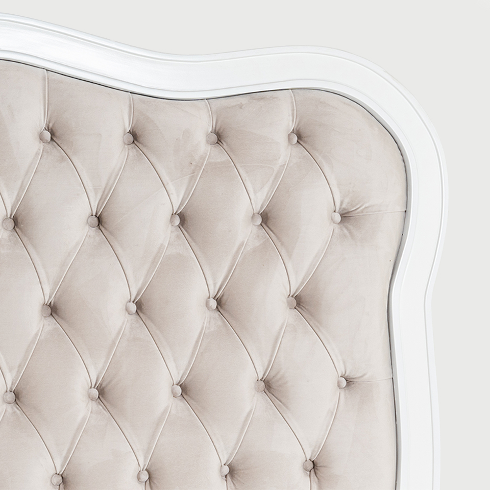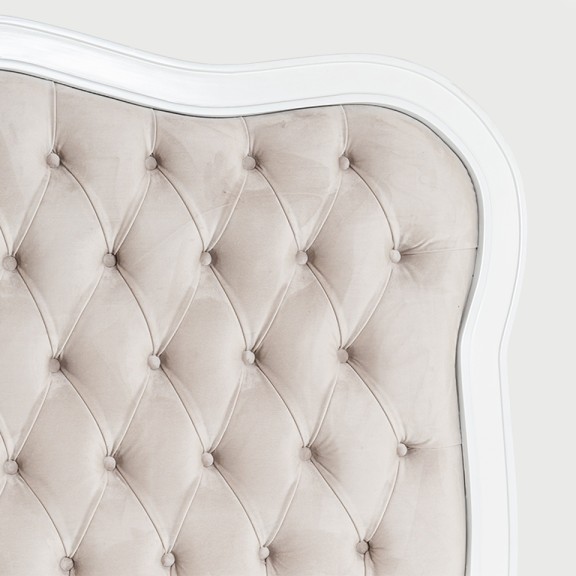 CABERA URIOSTE 01. CON MOLDURAS/ CAPITONEADO/ TELA GAMUZA GRIS CLARO.