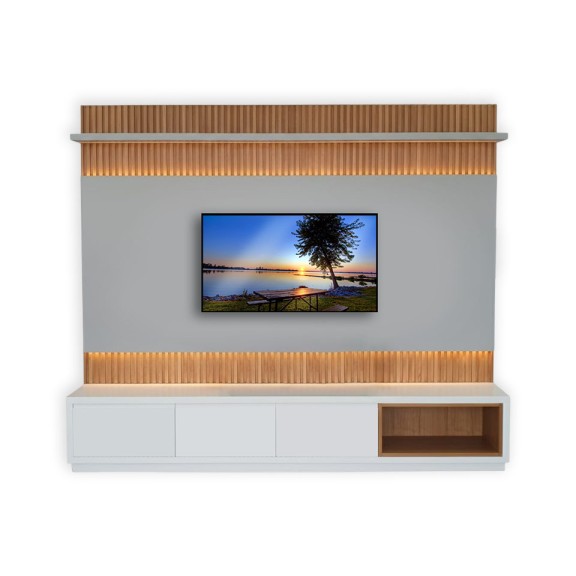 MUEBLE TV AMBAR 01 CON ESTANTE/CAJON/RIPADO/ LED LAQ FENDI