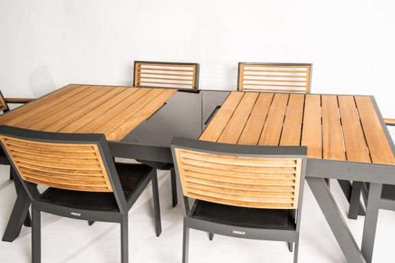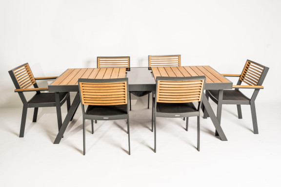JUEGO DE COMEDOR PRATO MESA 0.90X2.00 CON 2 SILLAS CON POSA BRAZO. 4 SILLAS SIN POSA BRAZO. METAL