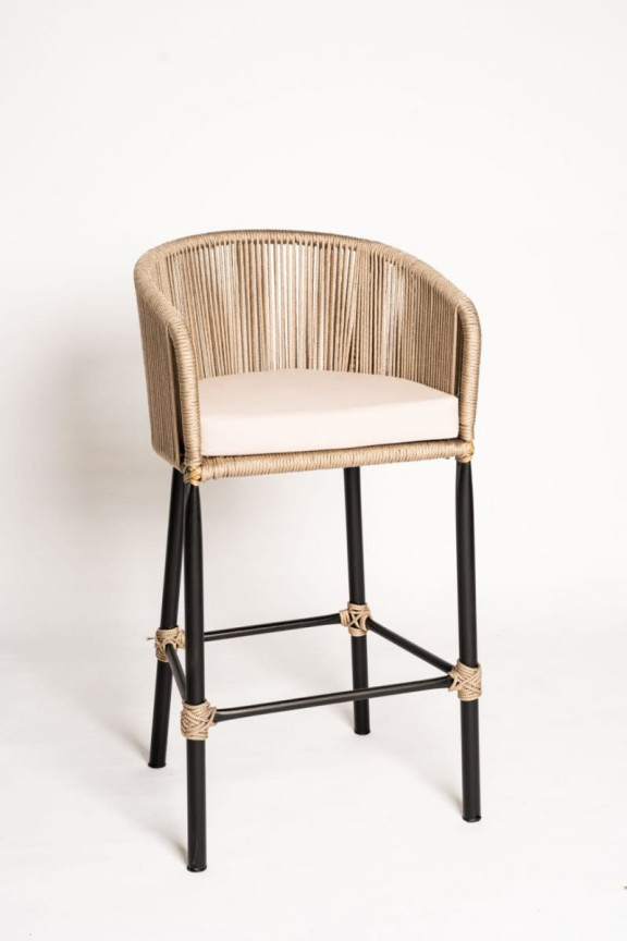 BUTACA LIA. CON ALMOHADONCITO /ASIENTO RATAN/ CUERDA NAUTICA /HIERRO NEGRO