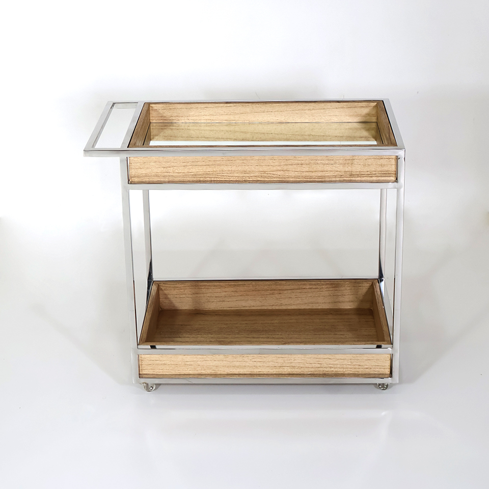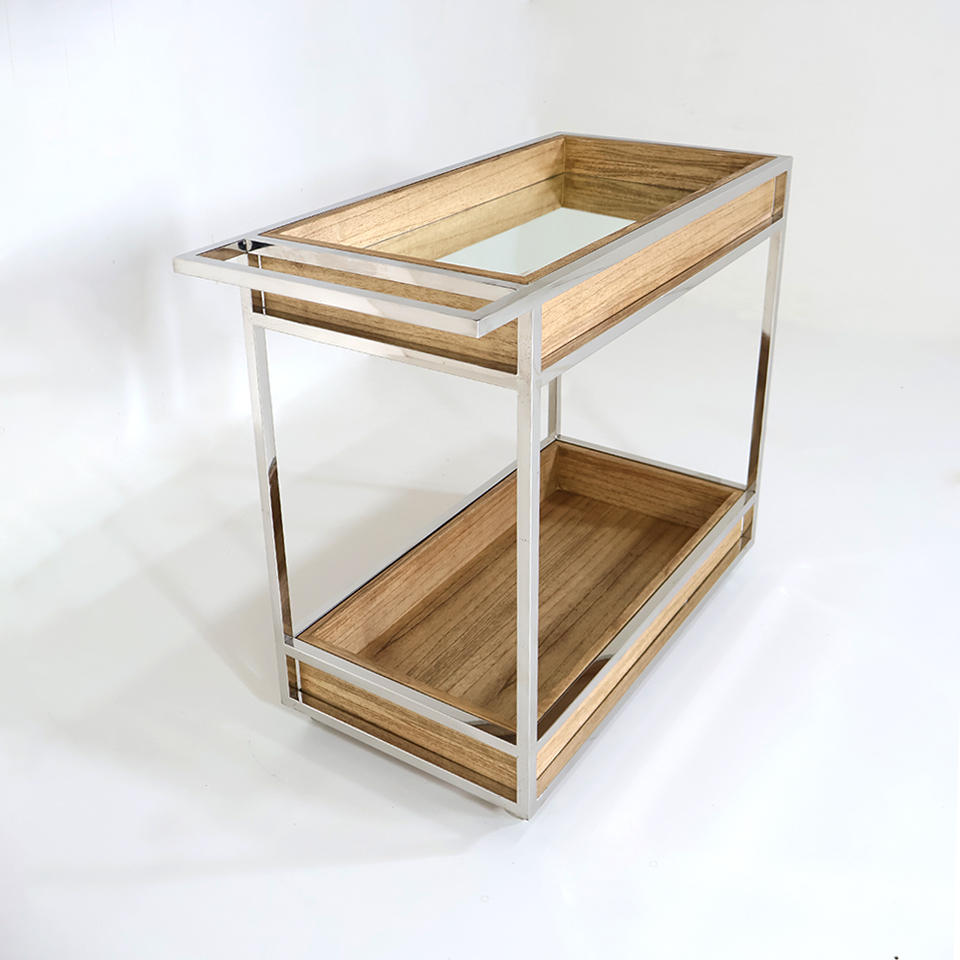 CARRITO BAR MILANO MA. CON ESPEJO / MADERA/ RESTO 01/ CROMADO