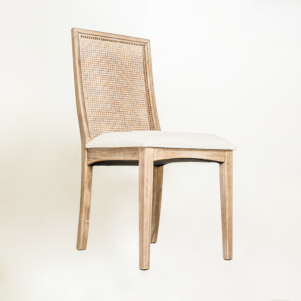 SILLA ECO CON ESTERILLA ASIENTO TAPIZADO TELA DE HILO BEIGA CLARO. LUSTRE DEMO 1