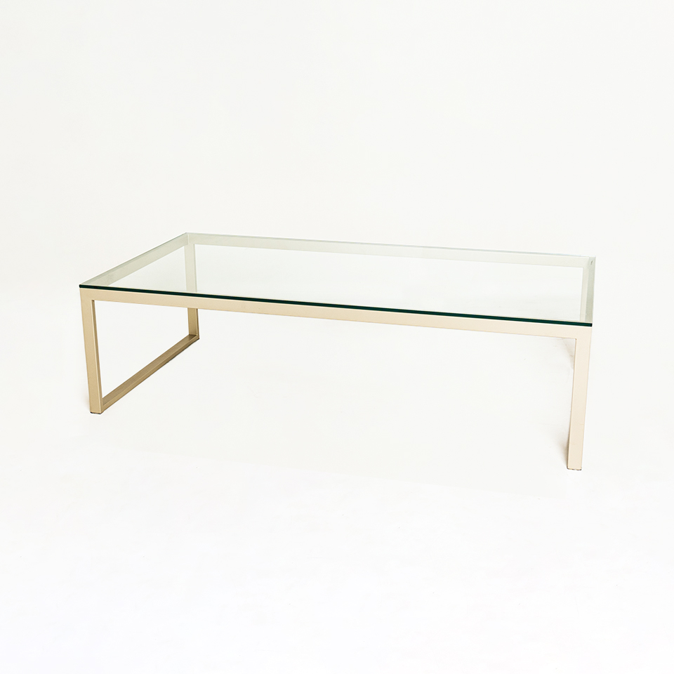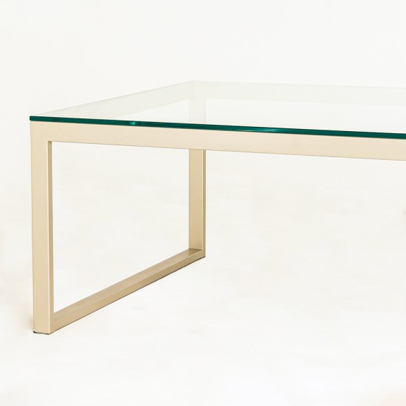 MESA DE CENTRO IBIZA 90. TAPA DE VIDRIO TEMPLADO/ BISEL / BASE INOX