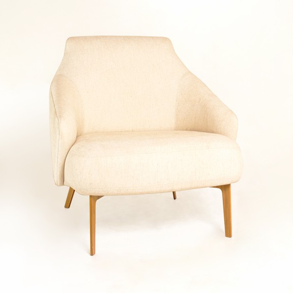 POLTRONA MOON ANK 87 TELA DE HILO BEIGE OSCURO /SIMIL MARRON PATA LAMINADA