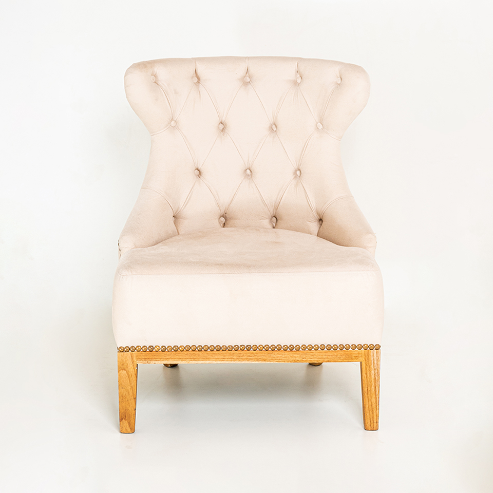 POLTRONA CENTURY 01 TELA DE HILO BEIGE CLARO CAPITONEADO CON TACHAS. LUSTRE RESTO 1