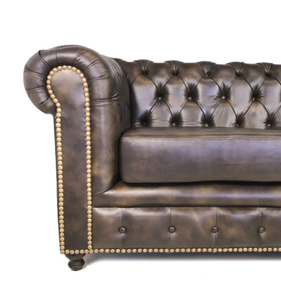 SOFA CHESTER 01 CON TACHAS 2 (1.90) CUERPOS CUERO MARRON CAPITONEADO