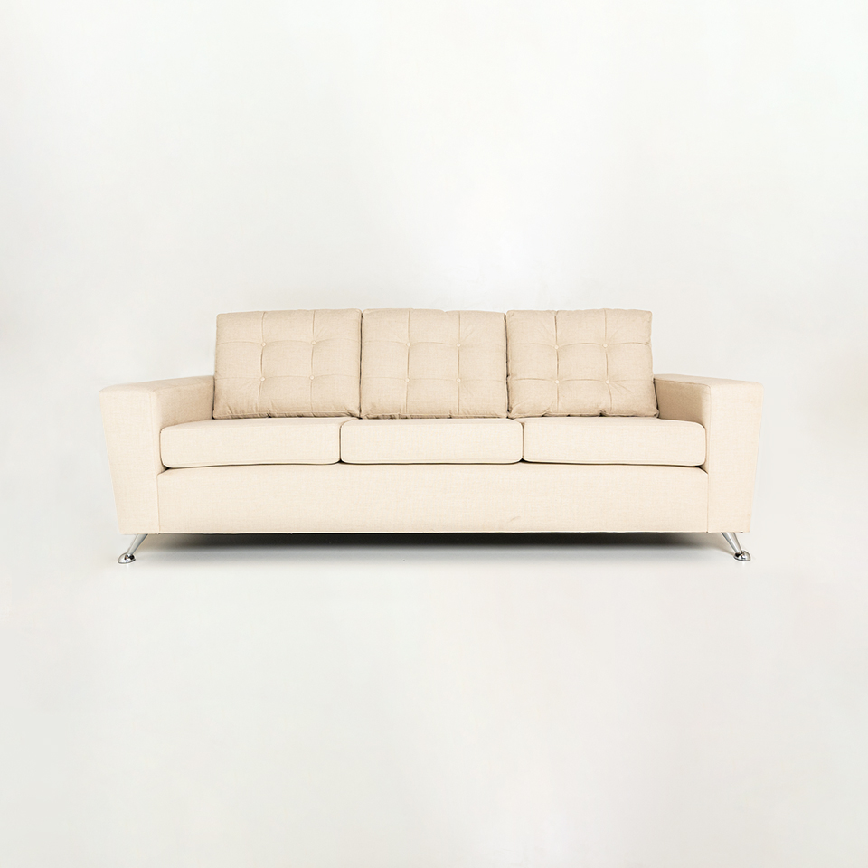 SOFA PUNTA 01. TELA BEIGE CLARO PATA CROMADA