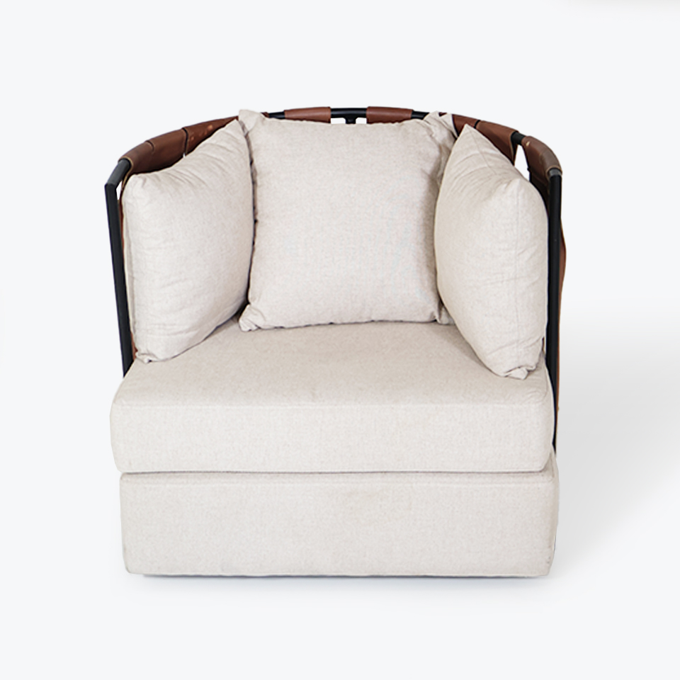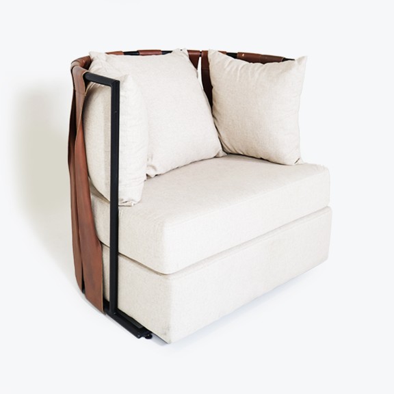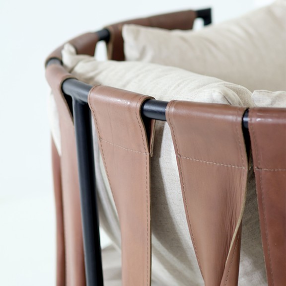 POLTRONA SOL 103 1 CUERPO CON TIRAS DE CUERO Y TELA DE HILO BEIGE CLARO /ESTRUCTURA DE HIERRO PINTADO NEGRO
