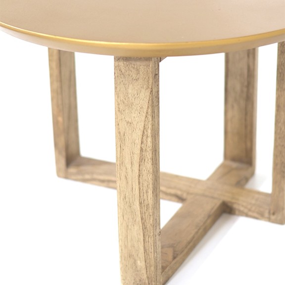 MESA LATERAL CROW PATA DE MADERA MACIZA EN LUSTRE RESTO 1. ACABADO SEMI MATE. TAPA CON BORDES INFERIOR BISELADO, LAQUEADO EN COLOR DORADO ACABADO SEMI MATE.