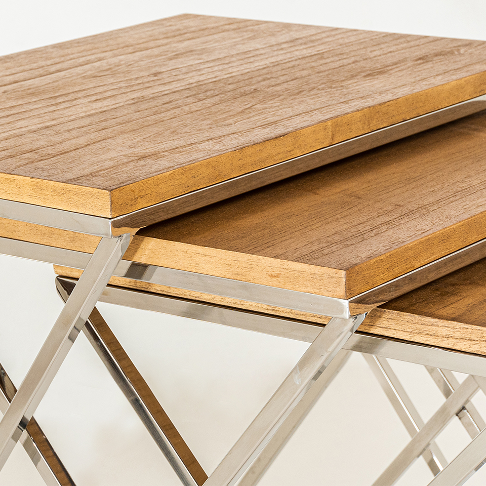 MESITA LATERAL KHUNE 0.50X0.40X0.60 INOX MADERA LUSTRE RESTO 1