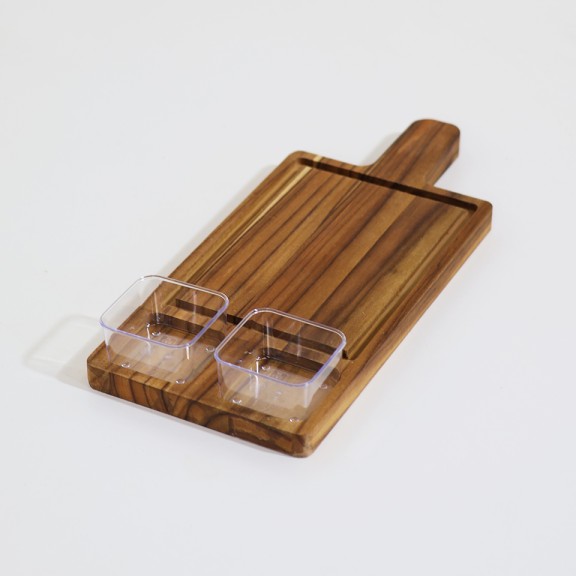 Tabla para servir 177 con mango teca y 2 recipientes
