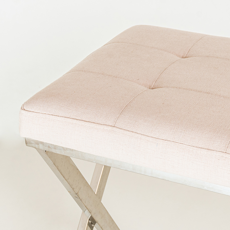BANQUETA X 01. TELA DE HILO BEIGE CLARO PATA X CROMADA
