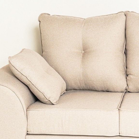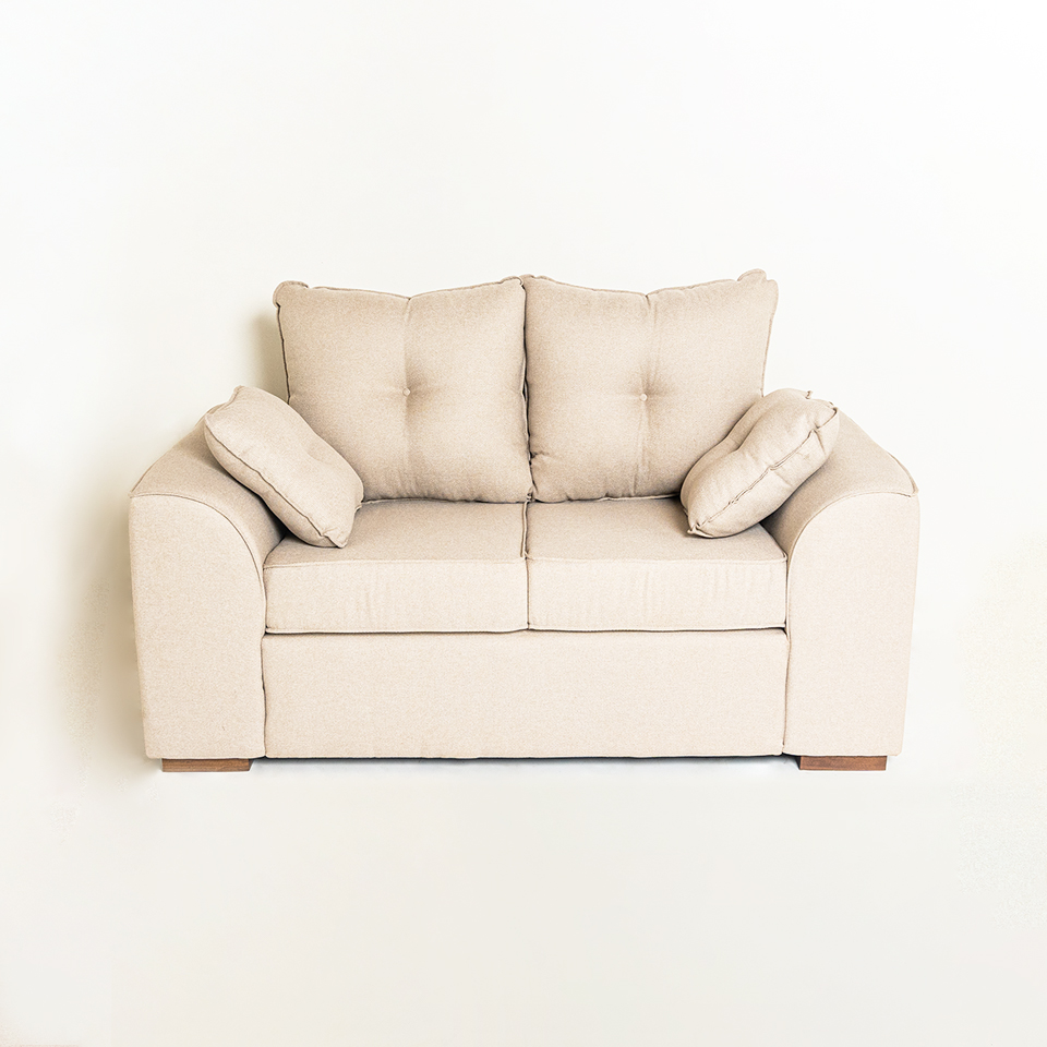 SOFA AMIN 145 2 CUERPOS. TELA DE HILO BEIGE CLARO. PATAS NOGAL