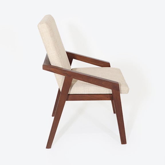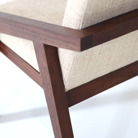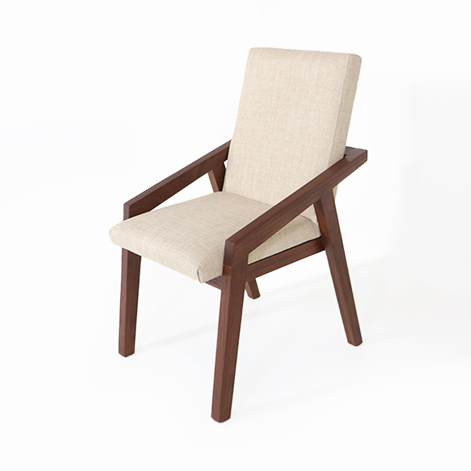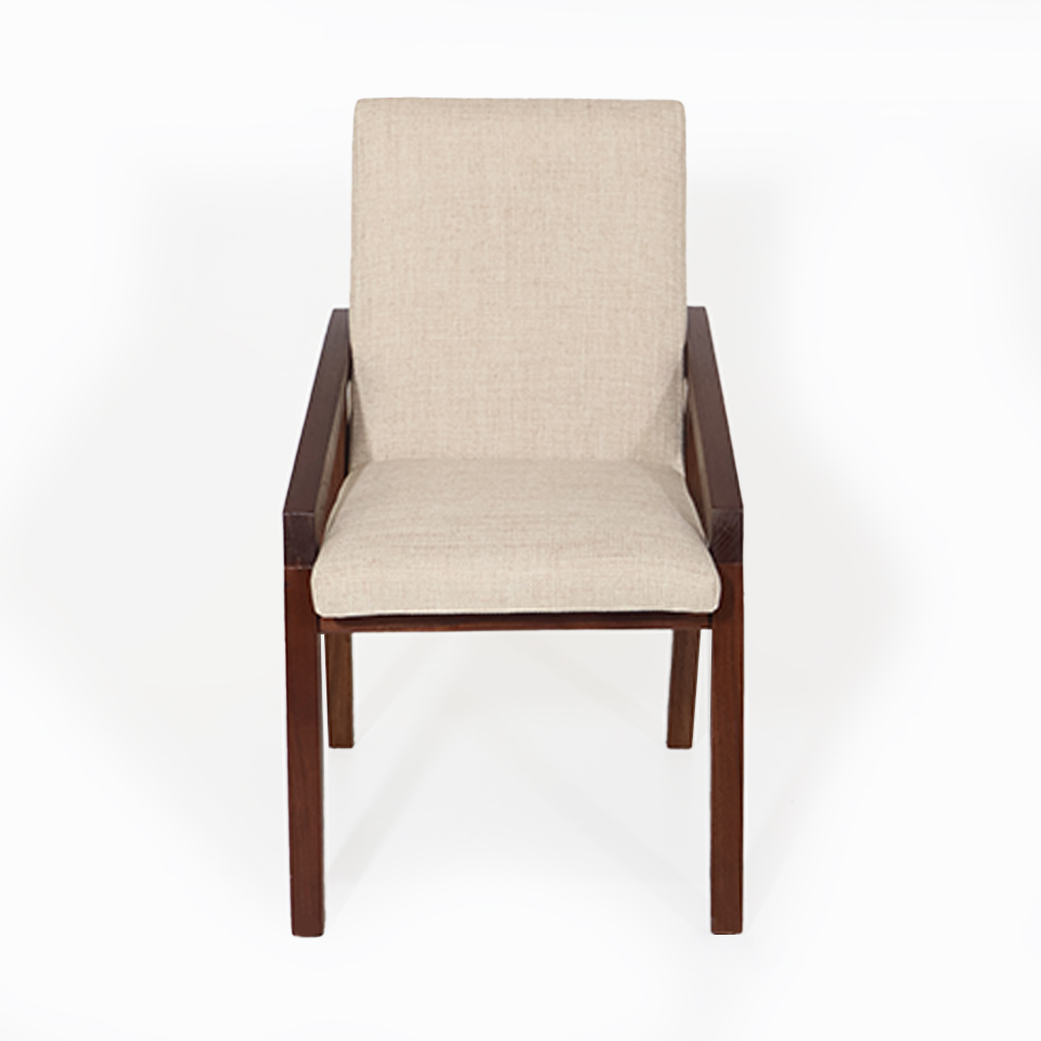 SILLA LEON VIRG 09 ASIENTO/RESPALDO TAPIZADO TELA DE HILO BEIGE OSCURO. LUSTRE NOGAL IMPORT