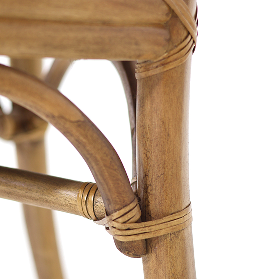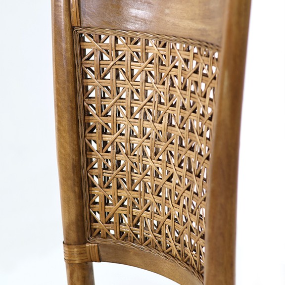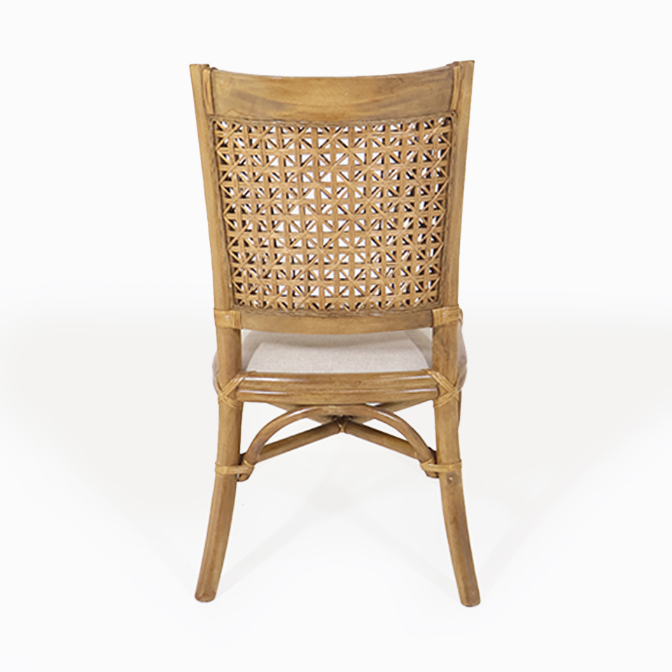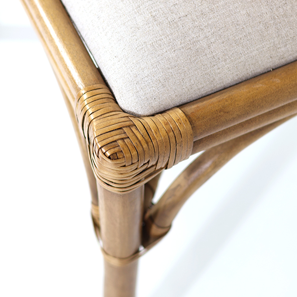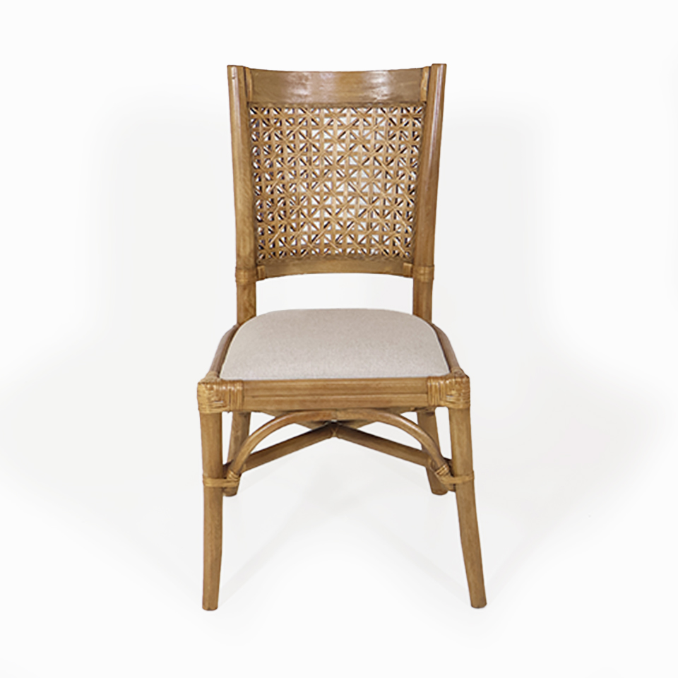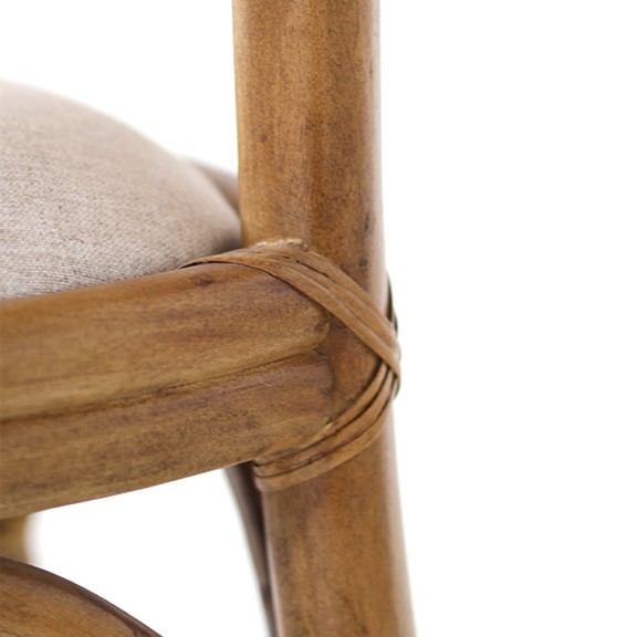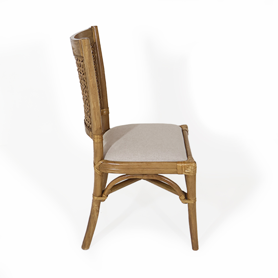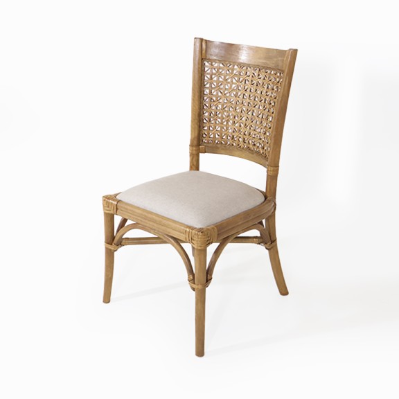 SILLA PARQUET 01 ASIENTO TAPIZADO TELA DE HILO BEIGE OSCURO. RESPALDO RATAN. LUSTRE RESTO 1