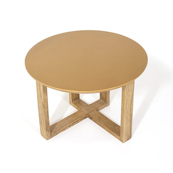 MESA LATERAL CROW PATA DE MADERA MACIZA EN LUSTRE RESTO 1. ACABADO SEMI MATE. TAPA CON BORDES INFERIOR BISELADO, LAQUEADO EN COLOR DORADO ACABADO SEMI MATE.