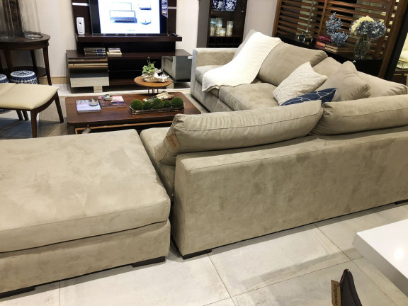 SOFA CHAISE LONGUE TELA DE HILO GRIS PATA METALICA