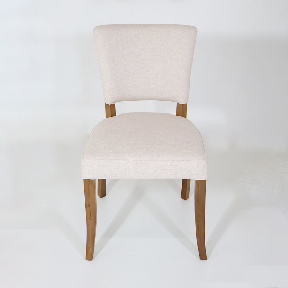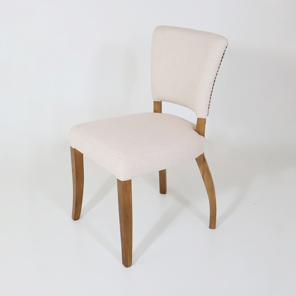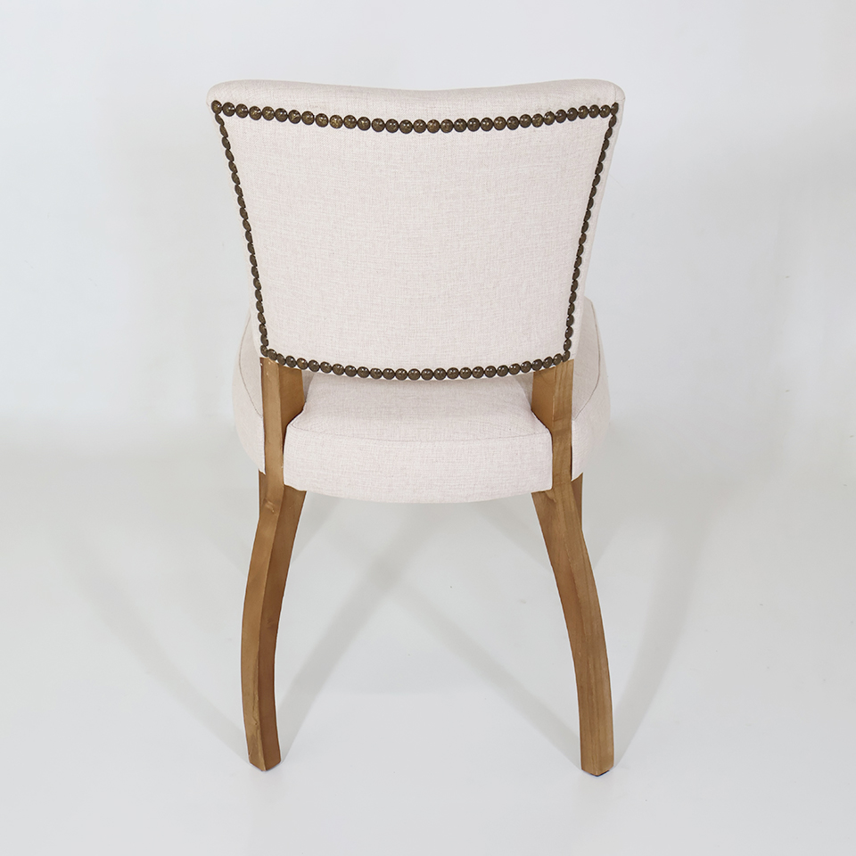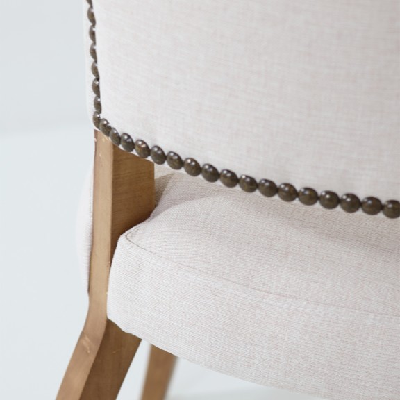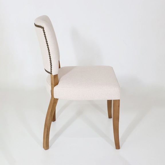 Tapizado en tela de hilo de color Beige claro | Patas de madera color Resto 1 | Con tachas en los laterales