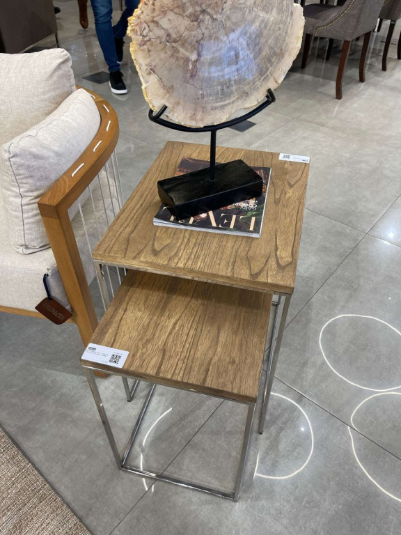 MESITA LATERAL KHUNE 0.50X0.40X0.60 INOX MADERA LUSTRE RESTO 1