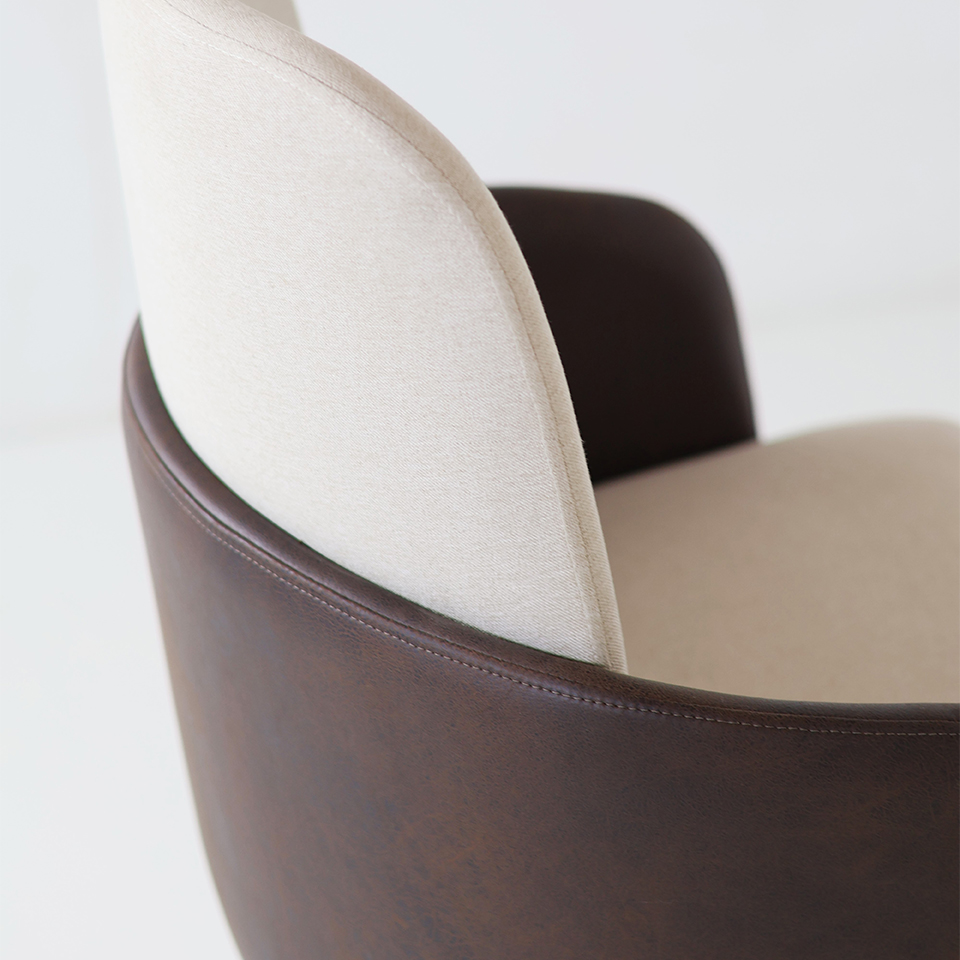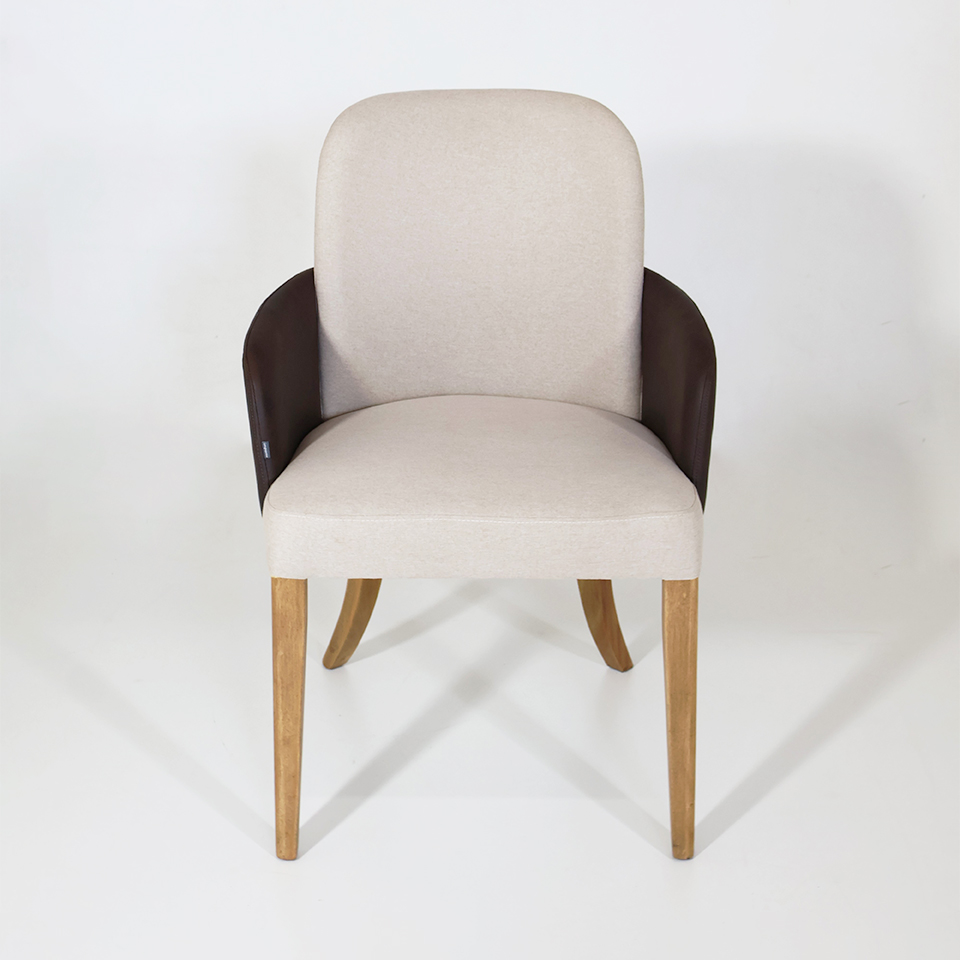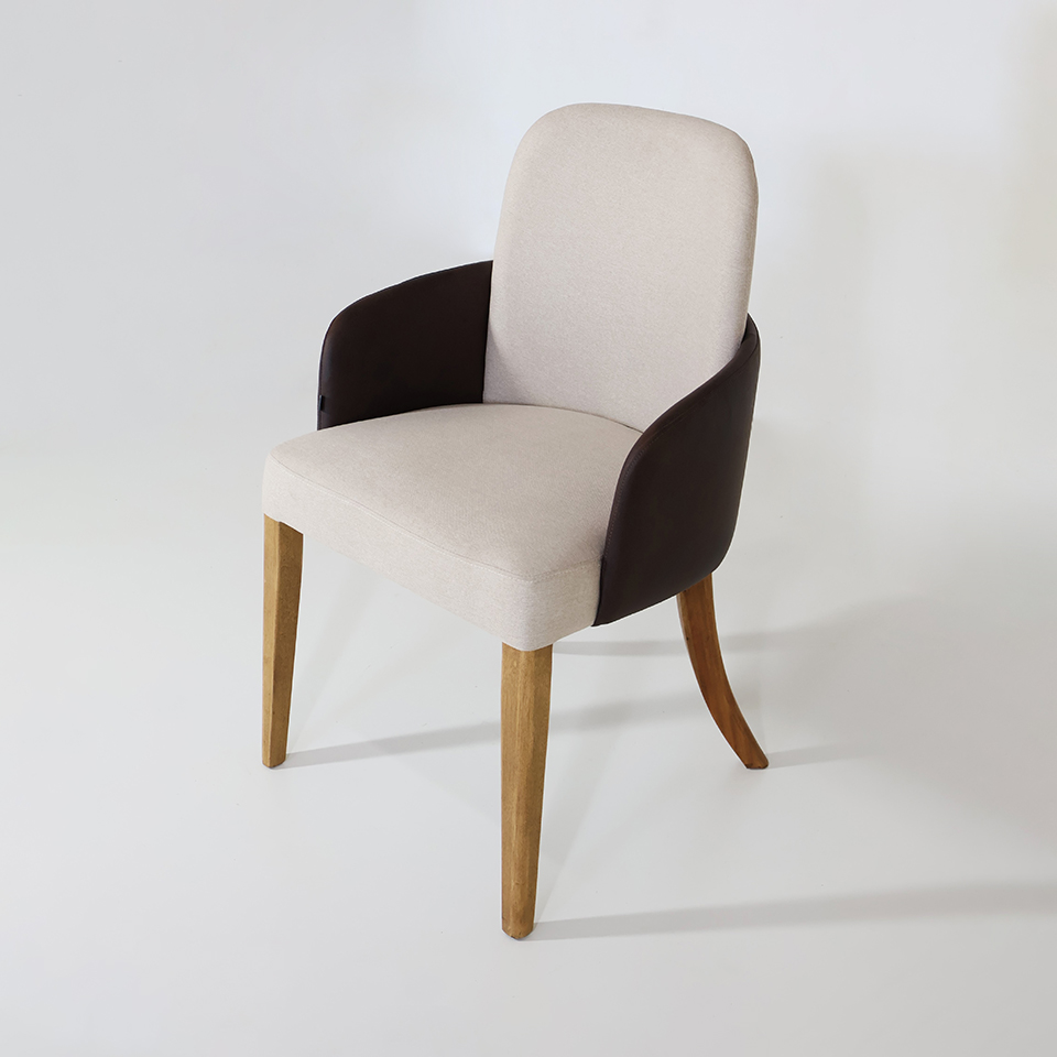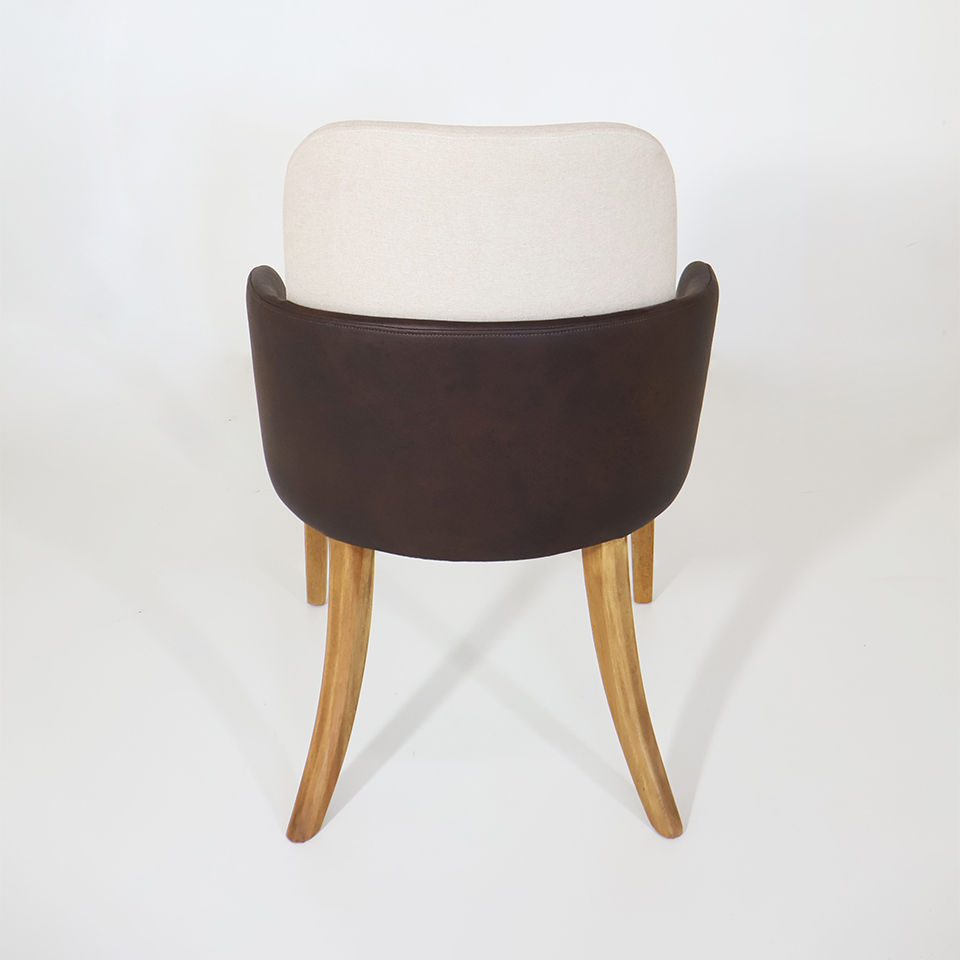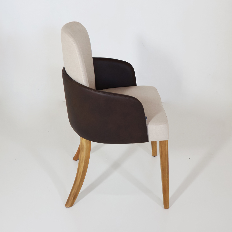 Silla London 103 Eco Cuero Marrón y Tela de hilo beige claro. Pata Nogal Import