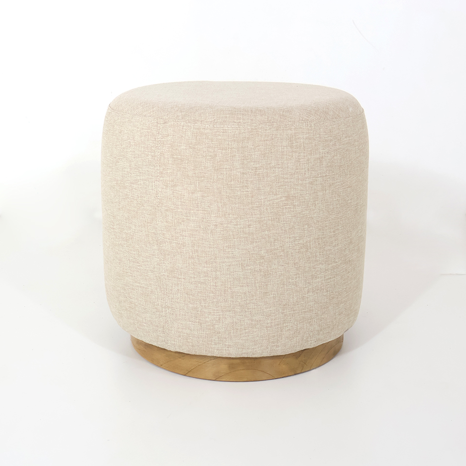 PUFF SOL 01 0.50 DIAM. X 0.45 TAPIZADO EN TELA DE HILO BEIGE CLARO. ZOCALO LUSTRE RESTO 1