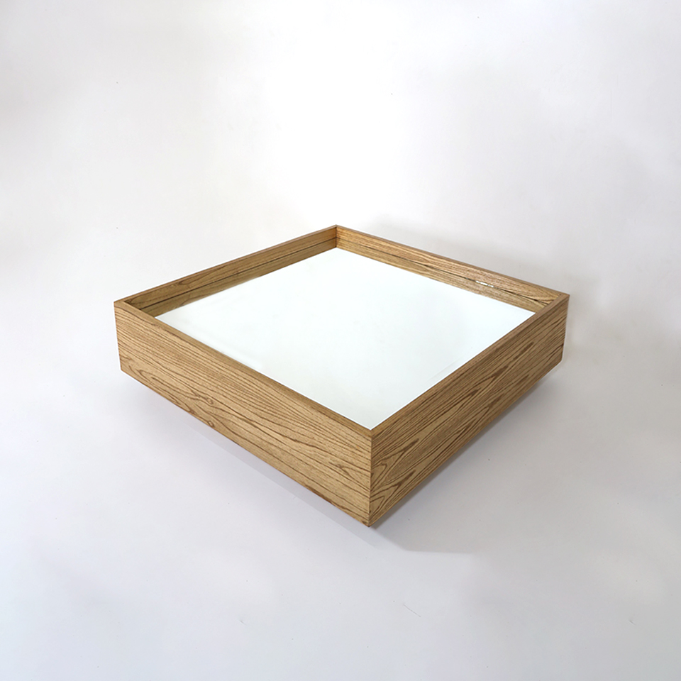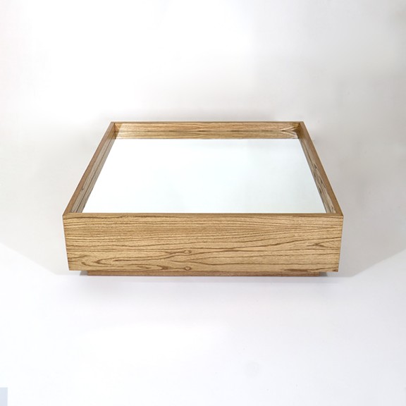 MESITA DE CENTRO CARLA MA 08. 1.20 X 1.20 X 0.35. ESPEJO Y MADERA