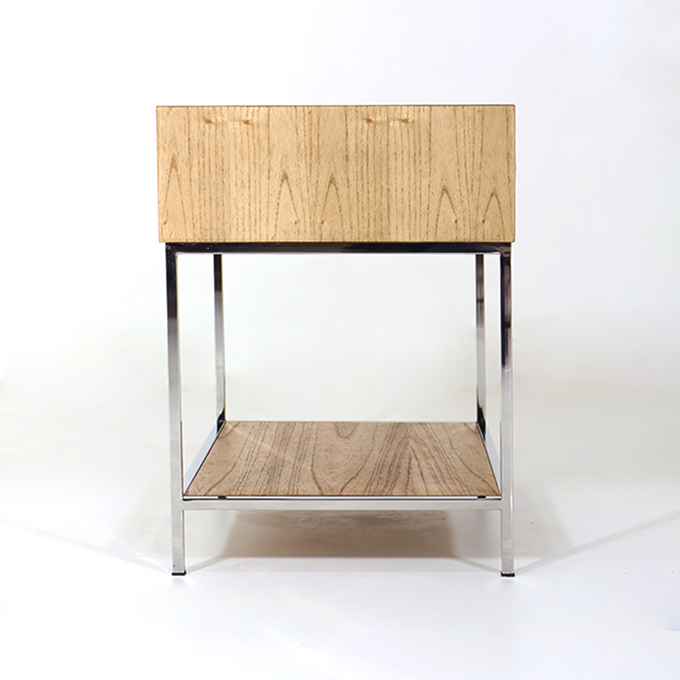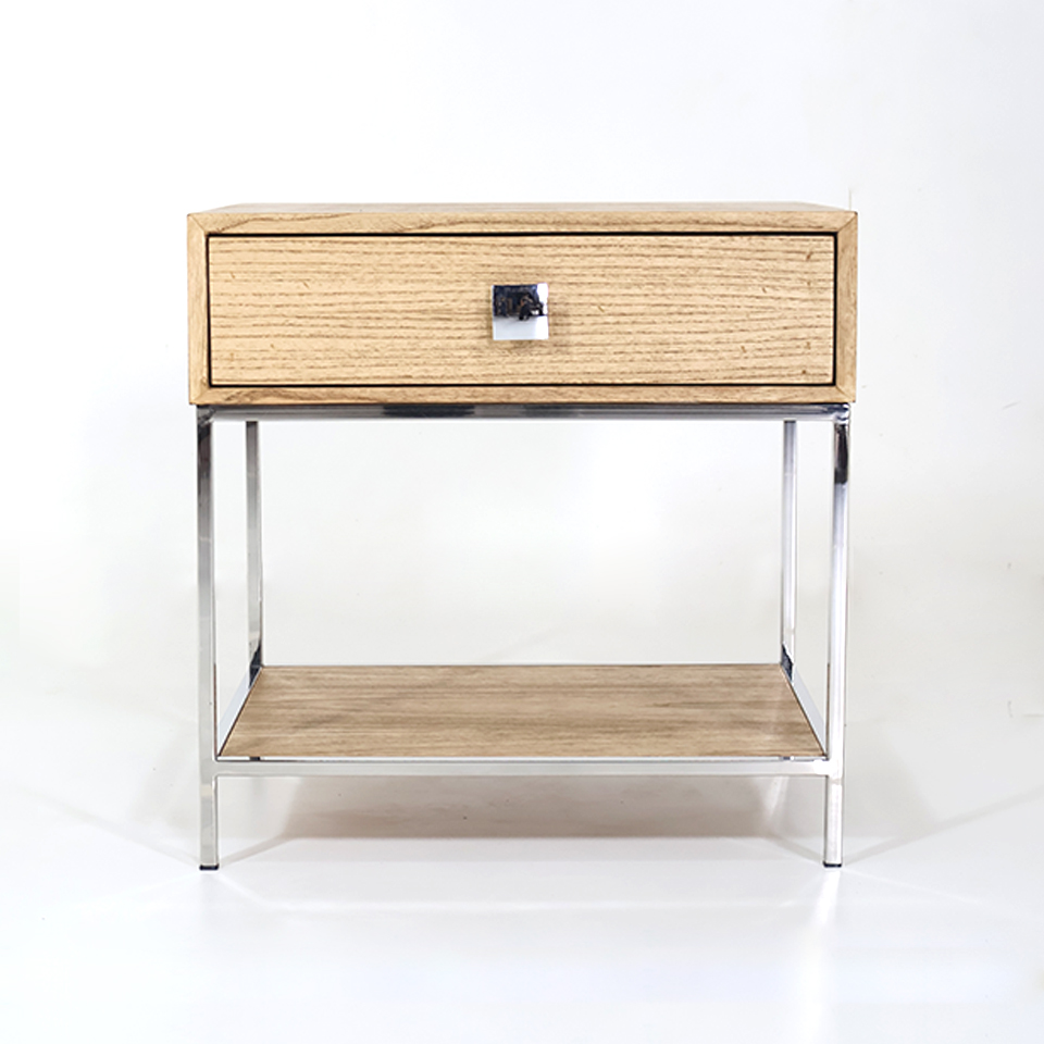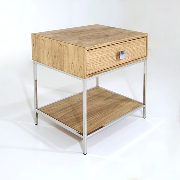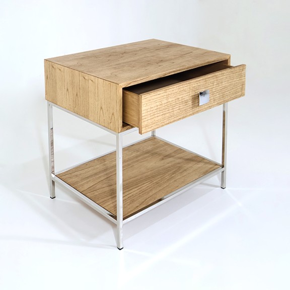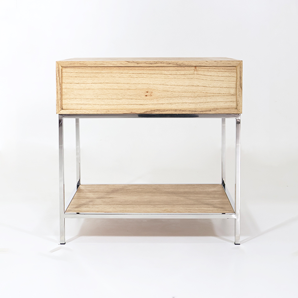 MESITA DE LUZ NORMAN MA 08 CAJON/REPISA RESTO 1 PATA CROMADA